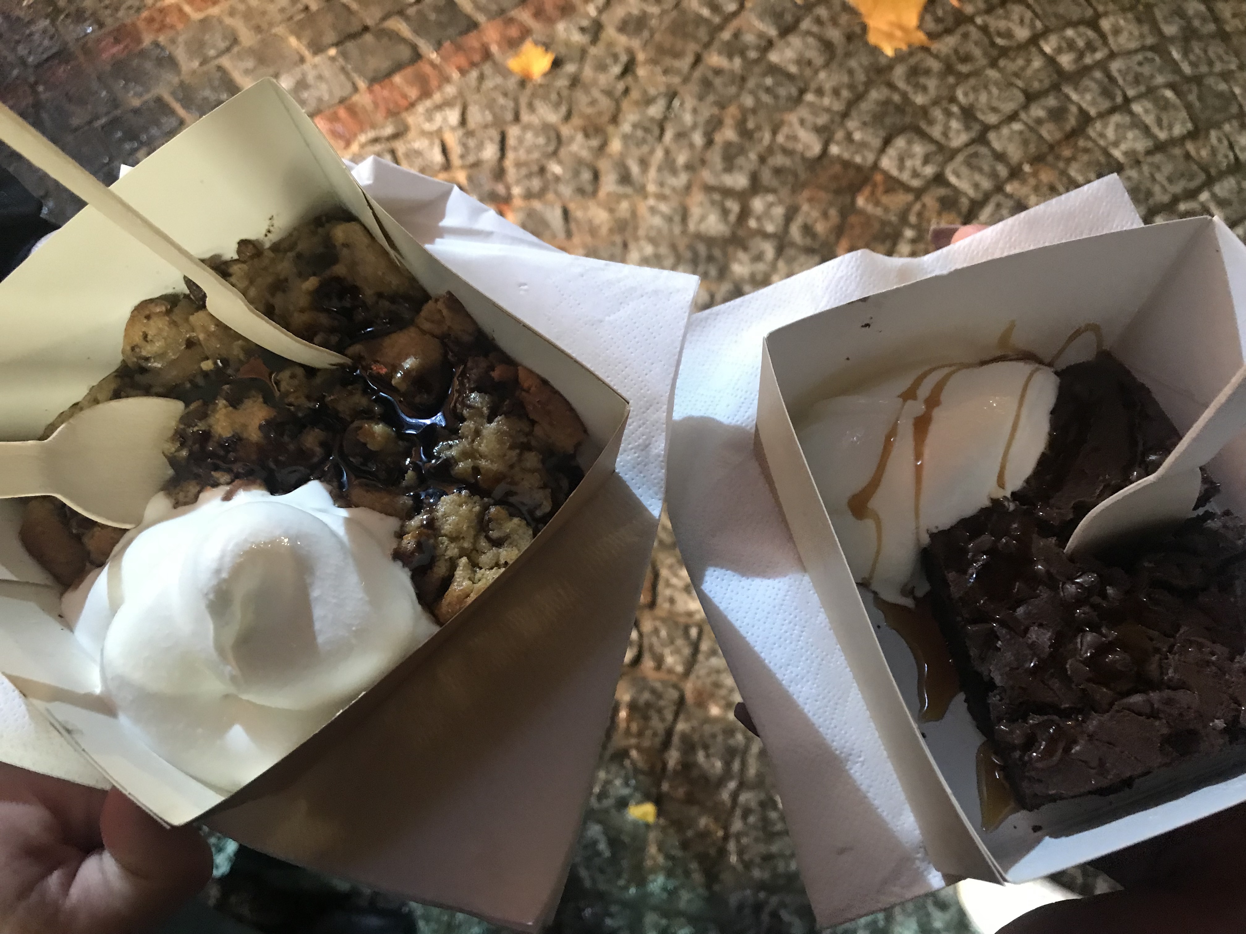 After I stopped crying over his little face, I hopped on a train to Manchester to meet my bestest friends (I’d name them but I’m too lazy, soz guys) who met me at the station, what angels right? Greeted by hugs and a few tears we decided to kickstart the Christmas spirit and braved the cold, wet traditional English weather and headed to the Manchester Christmas Markets, YAY! I love the markets, all the amazing food, lights, Christmas spirit and happy atmosphere that everyone is feeling as they drank mulled wine and hot chocolate whilst tucking into the God of all desserts, Hot Cookie Dough and Ice Cream!!! << It deserves 3 exclamation marks it was that good. Myself, Ellie and Holly also decided to be greedy and also bought a hot chocolate brownie with ice cream too, BEAUTIFUL!